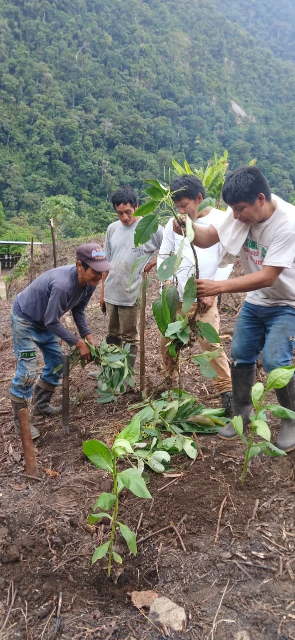 Planting decisions are made collectively through intergenerational assemblies. Restoration is carried out in minga — communal work gatherings rooted in Andean-Amazonian traditions of reciprocity and collective stewardship.